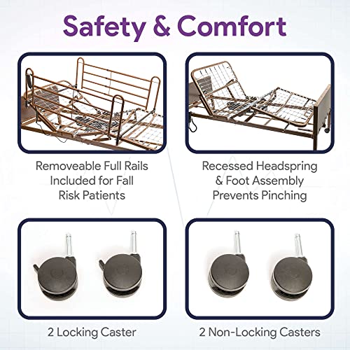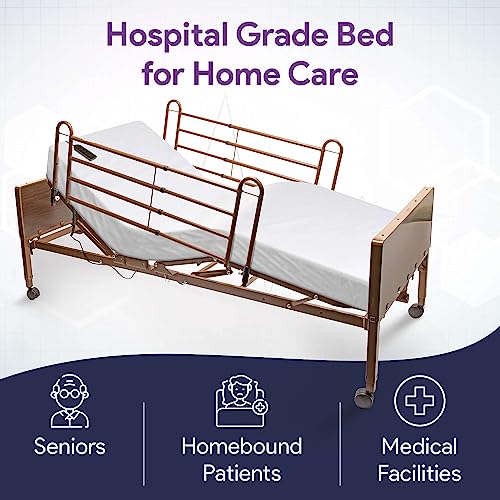 Full Electric Hospital Bed for Home Use with Foam Mattress and Full Rails – Medical Bed for Long Term Care and Medical Facilities – 36″ x 80″, Adjustable Height Range and Hi Lo