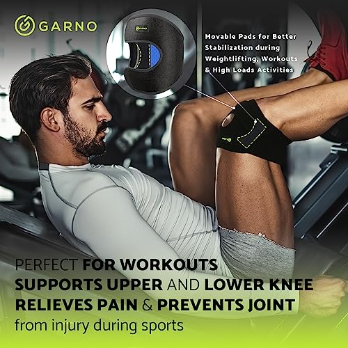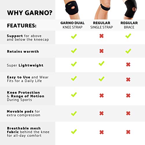 GARNO Knee Brace Plus Size, Dual Patella Tendon Support Strap, Adjustable Neoprene Stabilizer for Meniscus Tear, Arthritis, Tendonitis, MCL, ACL, Pain Relief, Recovery, Running, Men & Women; XL /2XL