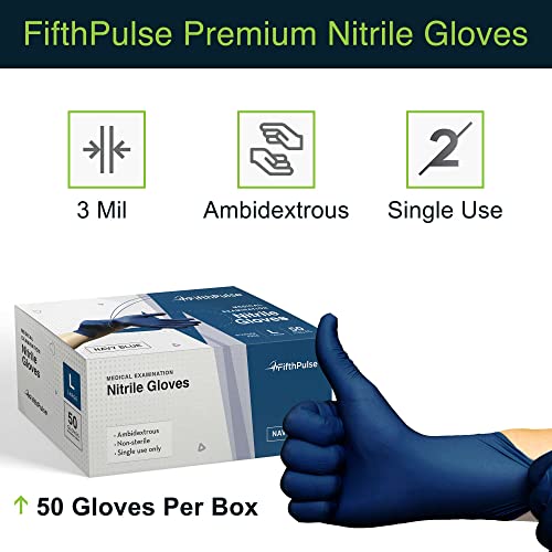 Gloves Disposable Latex Free Navy Nitrile Gloves Large, 50 Count – Powder Free Rubber Gloves – Medical Exam Surgical Gloves – Food Safe Cooking Gloves, 3 Mil Thick