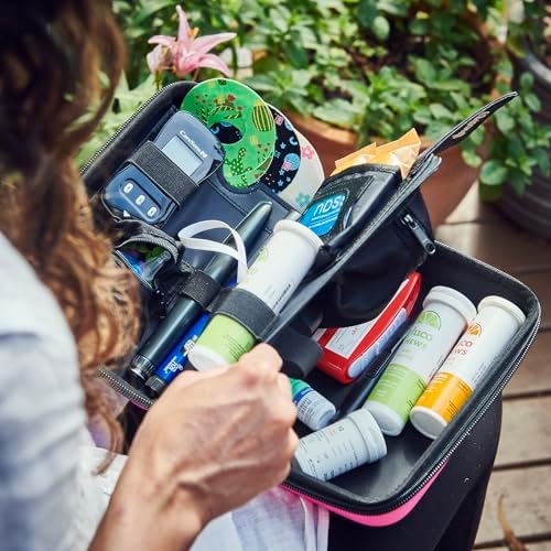 Glucology Diabetic Travel Case – Organizer for Blood Sugar Test Strips, Medication, Glucose Meter, Pills, Tablets, Pens, Insulin Syringes, Needles, Lancets (Black, Plus)