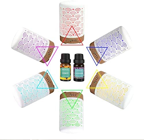 Handcrafted Ceramic Diffuser, 100ML Upgraded Ceramic Diffusers with ELavender&Lemon Oils, Aromatherapy Diffuser Cool Mist Humidifier with 7 LED Lights for Home Office Baby