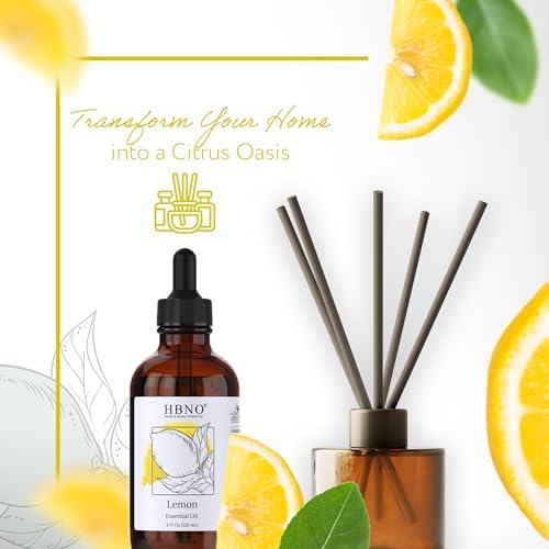 HBNO Lemon Essential Oil – Huge 4 oz (120ml) Value Size – Natural Lemon Oil, Cold Pressed – Perfect for Cleaning, Aromatherapy, DIY, Soap & Diffuser – Lemon Essential Oils
