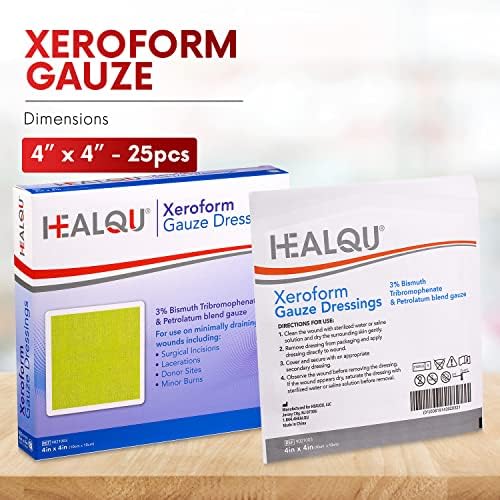 HEALQU Medical Xeroform Petrolatum Dressing 4×4-25-Count – Non-Adherent Gauze Pad for Low Exudating Wounds – Fine Mesh Gauze Patch Sterile for Wound Care Lacerations, Burns & Skin Grafts