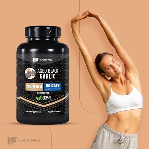 Healthfare Fermented Black Garlic Extract Dietary Supplement 2000mg | 90 Caps | Maximum Strength | Non-GMO | Gluten Free