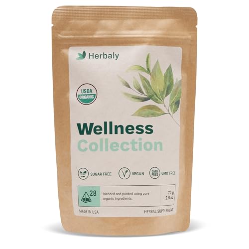 Herbaly Wellness Collection Organic Herbal Ginger Tea, 70 g, 28 Count Bag (Pack of 1)