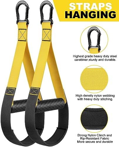 [Easy Set Up And Use] All-in-one workout equipment for home workouts with door anchor and adjustable resistance training extension strap, easy-to-adjust one buckle system is the perfect Portable Gym use in indoors and outdoors. You can use the bodyweight resistance trainer kit with horizontal bars, wall, doors, sturdy beams, weight racks, heavy bag mounts, railings, trees, fences or any sturdy and safe object for exercise, as well as aerial yoga training.