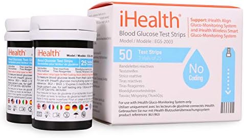 iHealth Blood Glucose Test Strips (50 Count), No Coding Blood Sugar Test, Eligible for FSA Reimbursement, Precision Sugar Measurement for Diabetics, Strips Work Only in iHealth Glucose Meters
