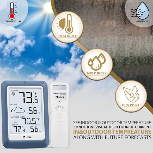 Indoor Thermometer Outdoor Hygrometer Wireless, Temperature Humidity Monitor Battery Powered Inside Outside Thermometers with 330ft Range Remote Sensor(Blue)