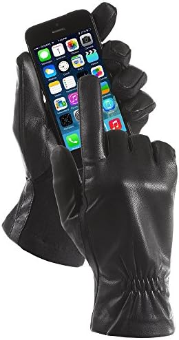isotoner Women’s Classic Stretch Leather Touchscreen Cold Weather Gloves, Fleece Lining