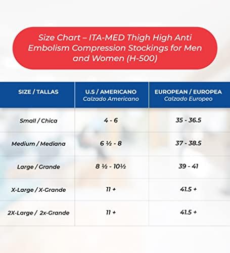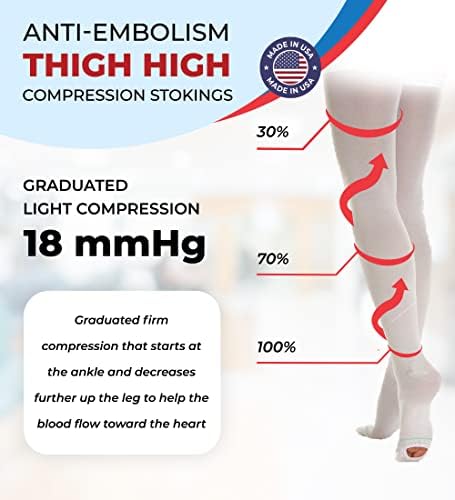 ITA-MED Anti-Embolism Compression Stockings for Men & Women – 18 mmHg, Thigh High, Made in USA