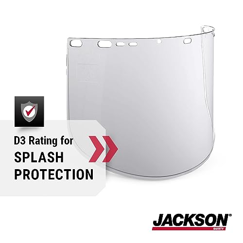 This face shield window fits any Jackson Safety headgear and is compatible with the Jackson Safety Hard Hat Interchange System (HHIS) without any additional tools being required. The clear proportionate window allows maximum light transmission and provides a D3 rating for splash protection. Measuring 9″ x 15.5″ x 0.060″ and an ideal combination of weight and strength; This face shield window is used in light industrial manufacturing, splash, landscaping, food processing application etc. Protective eyewear should be worn at all times under face shields; Available in a case of 12, this clear face shield window meets ANSI Z87.1 standards when used with any Jackson Safety brand head gear. Established in 1933, Jackson Safety has built a century long reputation for delivering the most innovative safety solutions in the welding and personal protective equipment industries. When it comes to providing safety solutions with long-lasting value, durability and comfort, Jackson Safety has set the standard. Whether the need is for welding protection in a steel fabrication environment, head protection on a construction site, or hearing protection at an airport, Jackson Safety provides the widest range of safety choices to meet the needs of every job and every worker.