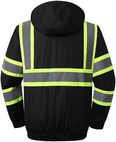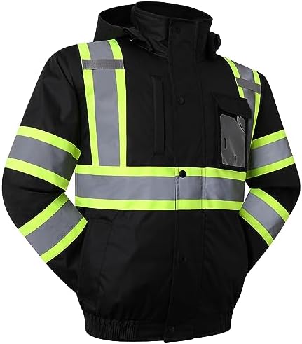 JKSafety Hi-Vis Winter Safety Bomber Jacket for men and women | Winter Safety Jacket Durable and Waterproof | Construction Work Jacket for Winter | Cold Weather PPE | ANSI Compliant (116-Black L)