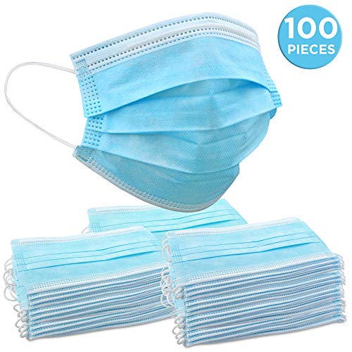 Jumbl Face Mask [100 Pack] Single Use Disposable Blue Face Mask, 3-Ply Masks with Elastic Earloops