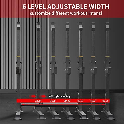 [6 POSITIONS ADJUSTABLE WIDTH] WITH 6-Level width(28”-47”)adjustment,which gives the possibility to precisely adjusting the equipment ,Suits different figures and various training purposes.Make your use easier and more convenient.