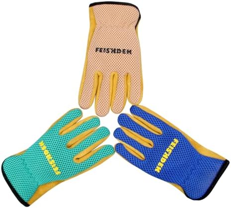 Kids Leather Gardening Gloves, 2 Pairs Toddler Work Gloves, Breathable Design Perfect for Children Gardening Age 2-6