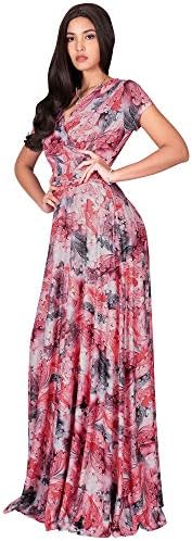 KOH KOH Womens Long Cap Sleeves Floral Print V-Neck Summer Sundress Maxi Dress