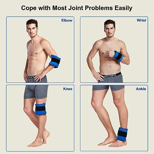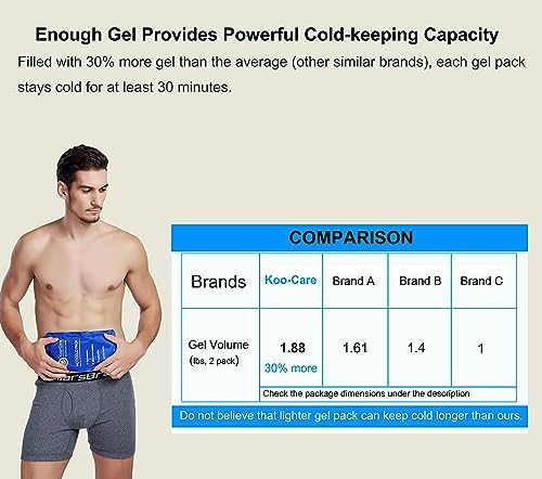 Koo-Care 2 Gel Ice Pack for Injuries Reusable Flexible Hot Cold Pack Wrap with Elastic Strap Cold Compress for Head Shoulder Arm Elbow Wrist Lower Back Knee Ankle – Pain Relief for Migraine 10″ x 5″