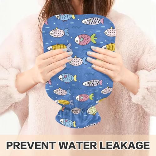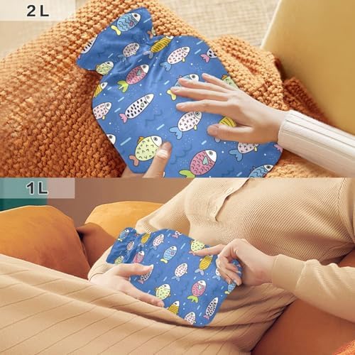 Large Water Bottle with Soft Cover 2 L fashy Shoulder ice Pack for Hot and Cold Therapies Sea Fish