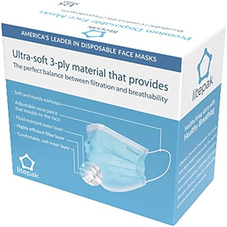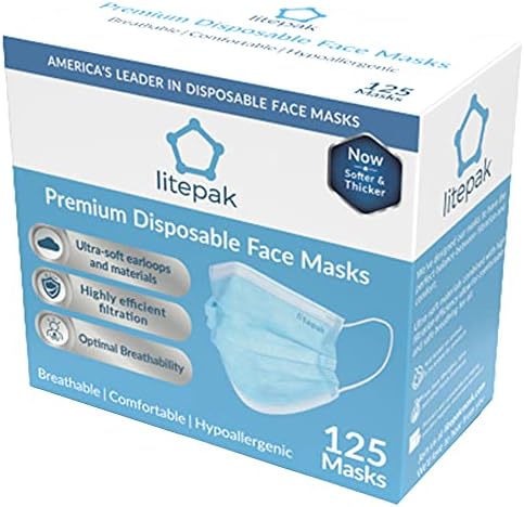 Litepak 125-Pack Disposable Face Mask Premium Comfort Earloops with Dispenser Box (Blue)