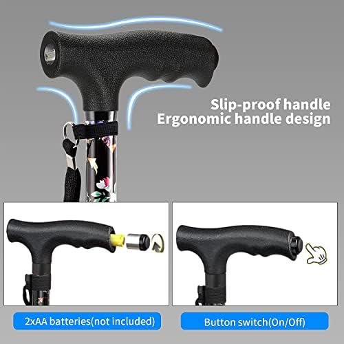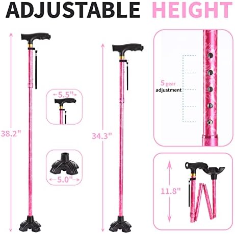 LIXIANG Walking Cane with LED Light, Adjustable Folding Walking Cane for Women and Men, Lightweight Portable Collapsible Cane Quad Cane for Senior Balance