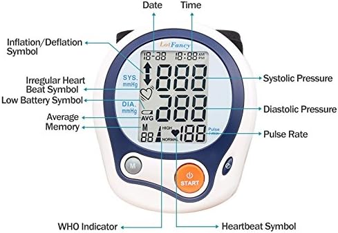 LotFancy Wrist Blood Pressure Monitor, Wrist BP Cuff (5”-8”), 60 Reading Memory, Automatic Digital Blood Pressure Machine, Home BP Gauge for Irregular Heartbeat Detection