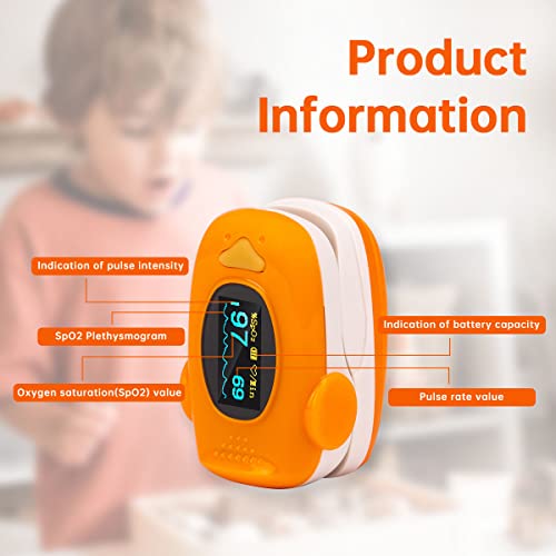 M50A Children Pulse Oximeter Fingertip, Oximeter Finger with Pulse for Kids, Oxygen Meter Finger Pulse Oximeter Child (Orange, not for newborn/infant)