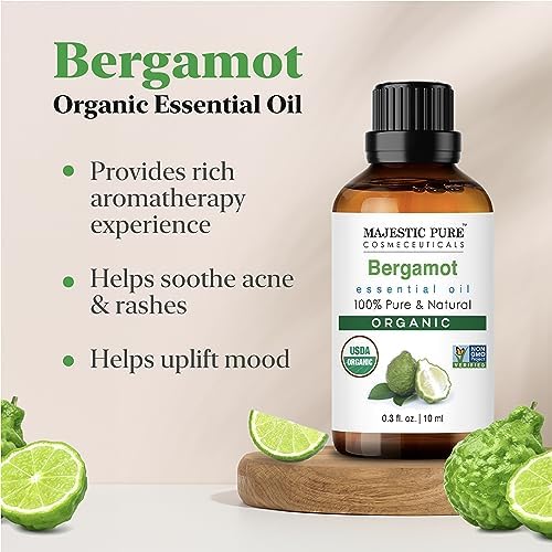 Majestic Pure USDA Organic Bergamot Essential Oil for Diffuser | 100% Organic Bergamot Oil | for Skin, Aromatherapy, Fragrance | 0.33 fl oz