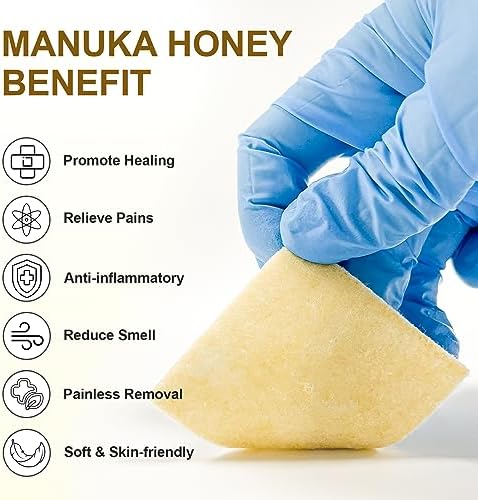 【Easy to Use & Painless Removal】Just clean and dry the wound, gently cover the honey side over the wound, then fix it with a secondary tape or dressing. The manuka medical honey pads provides a moist wound environment and maximizes patient comfort by conforming intimately to body contours without sticking to the wound and causing new pain.
