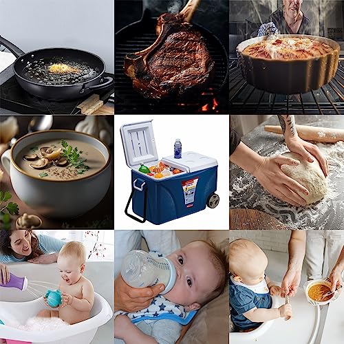 Large digital display cooking thermometer with green backlight, easy to read in low light ; Perfect to use for grilling, baking, and cooking, whether you’re frying, grilling, smoking, roasting chicken, baking turkey or having an outdoor BBQ party. It’s also ideal for measuring water temperature for gardening, Compact design that makes it easy to store and carry around
