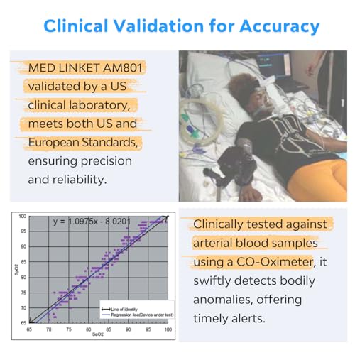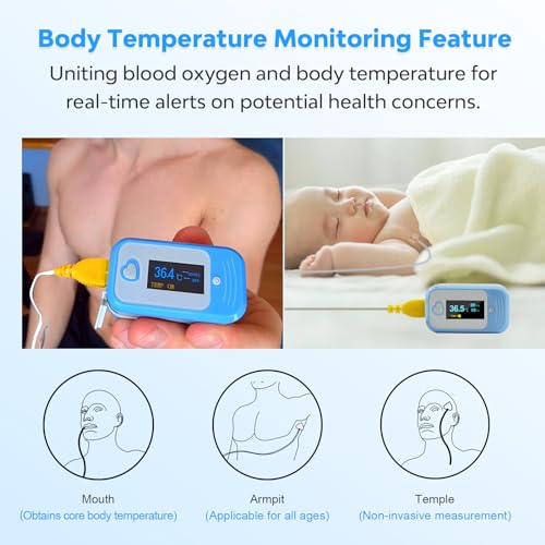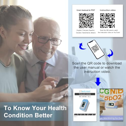 MED LINKET AM801 Pulse Oximeter Fingertip, 5-in-1 Blood Oxygen Saturation Monitor Checks SpO2, Body Temperature, Pulse Rate, Perfusion Index, PPG, OLED Display with Alarm for Abnormal Readings