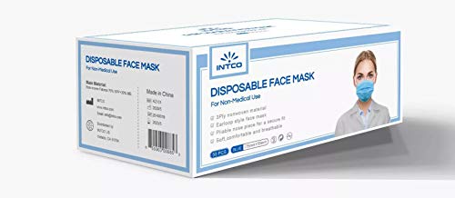 Intco Medical Procedure Face Mask with Earloops, Blue, Box of 50