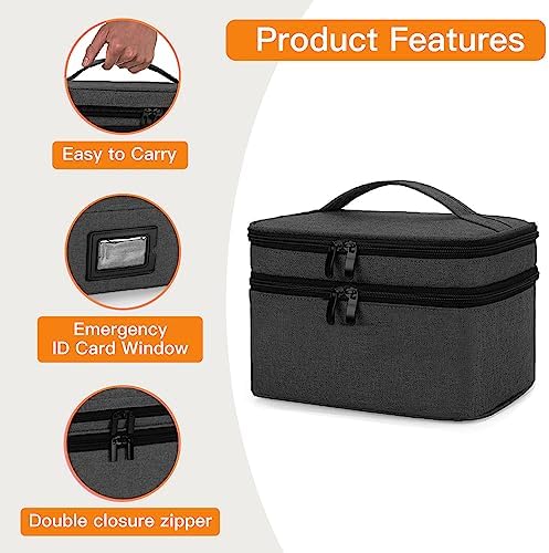 💊【Quality Materials】– The Medicine bottle organizer is made of sturdy nylon and is waterproof and wear-resistant, the inner features PE foam filler for extra protection. The top handle is portable to carry on the go. The two-way zipper design allows you to put in or take out emergency supplies easily.