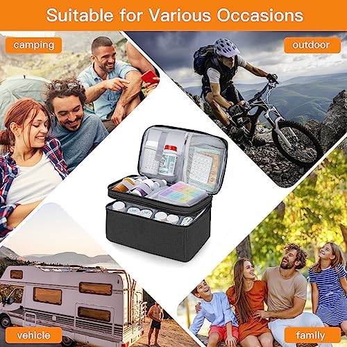 Medicine Storage Organizer Bag Empty, Travel Medicine Bag Pill Bottle Organizer Box, Home Medication Bag for Pills, Vitamin, Fish Oil, Medical Supplies for Women and Men, Black