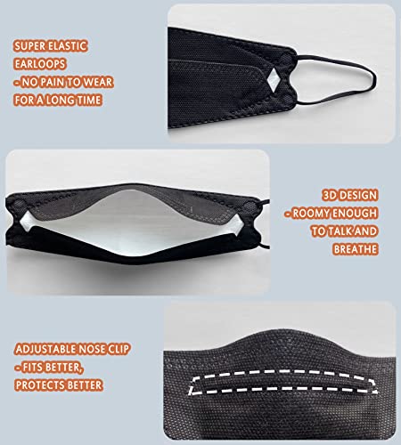 MGEIIRD KN95 Face Masks for Adults 50 Pcs, Individually Wrapped, 5-Ply Black Disposable Face Mask Against PM 2.5 Smoke & Dust, Filtration Efficiency 95%