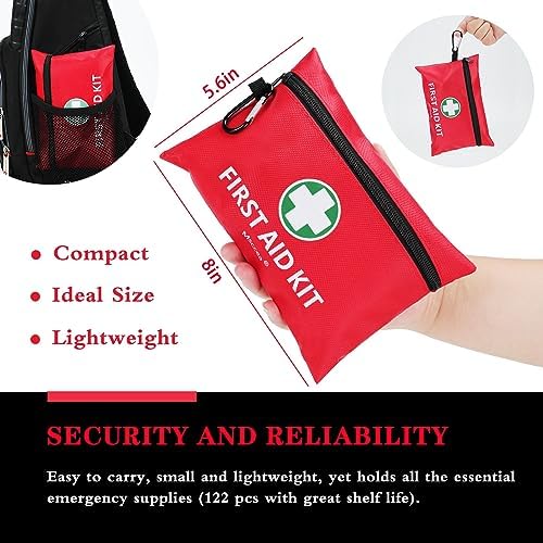 Mini First Aid Kit, 122 Piece Small First Aid Kit Designed for Family Emergency Care for Home, Camping, Hiking, Backpacking, Travel, Vehicle, Outdoors & Schools