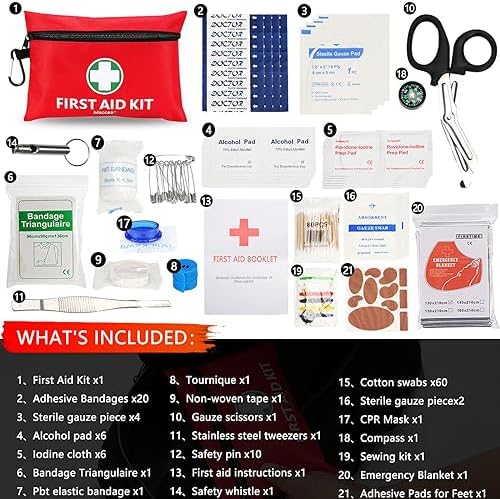 🏥【WATERPROOF AND MOISTUREPROOF】This lightweight, compact, and portable kit comes in a waterproof, The surface is made of premium waterproof material, which can protect all internal items from moisture exceeding all standards of the first aid kit.