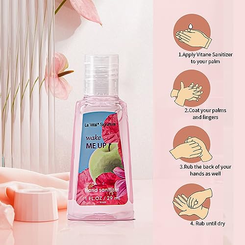 Mini Hand Sanitizer Gel, Vital Luxury Anti-Bacterial Hand Gel 1 FL OZ, Portable Hand Sanitizer with Travel Size Flip Cap Bottle, Clear Moisturizing and Refreshing (Wake Me Up, 1 FL OZ 48PCS)