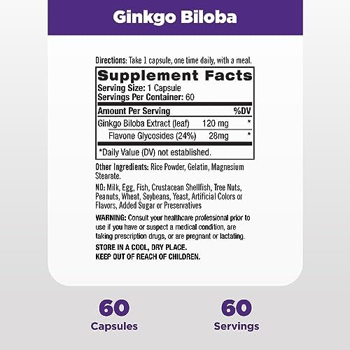 Dietary supplement with 120mg of Ginkgo Biloba extract per serving to help support brain health and maintain memory.*