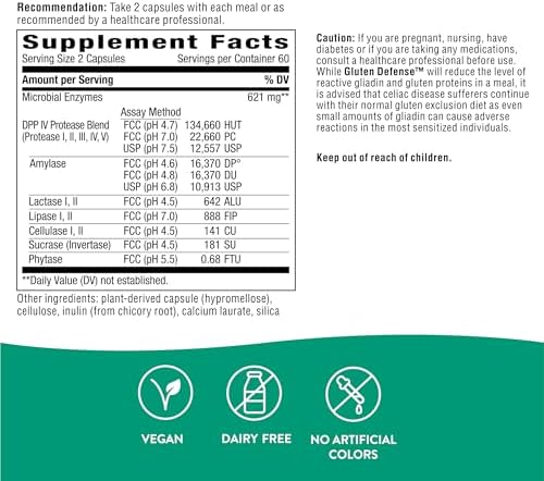 If you have a gluten sensitivity, you know how difficult it can be to avoid it. Gluten Defense contains gluten and casein digestive enzymes to help your body digest wheat and dairy.* ** It contains DPP IV (dipeptidyl peptidase) activity from a protease enzyme specific to the digestion of gluten so you can enjoy every meal and moment.* (**Gluten from grains and casein from dairy.)*This statement has not been evaluated by the Food and Drug Administration. This product is not intended to diagnose, treat, cure, or prevent any disease.