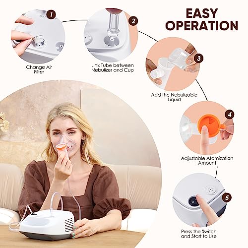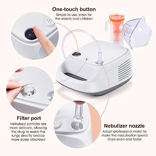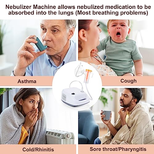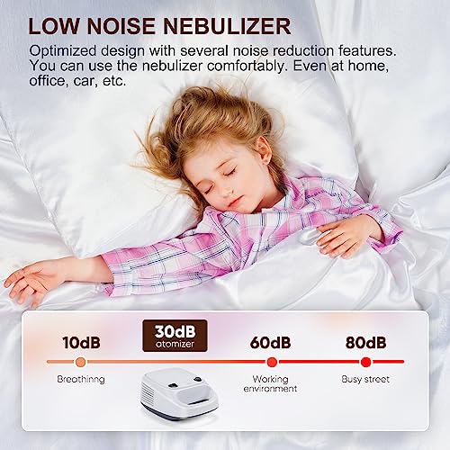 Nebulizer Machine – Low Noise Nebulizer for Adults & Kids with 3 Reusable Masks, Portable Nebulizer for Breathing Treatment, Home Use and Travel