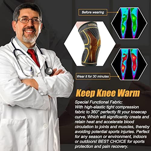 TARGETED RELIEF & SUPPORT— NEENCA got a well balance between compression and comfort. Adopt Anti-Inflammatory Therapy and improves circulation around knee area, which will effective reduce the pressure of knee joint and help the meniscus to recover. Wrap around Patella to enhance the stability of kneecap and relax tendons, prevent muscle strain. Relieve ACL, MCL, PCL pain, prevent ligament injury, meniscus tear, swelling, inflammation and so on. It is Perfect for Injuries Recovery or Workout.
