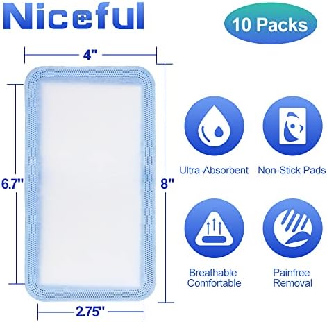 Niceful Super Absorbent Dressing 4″x 8″, HSA FSA Eligible, Absorbent Bandages for Wound Care, Large Non Adhesive Bandage Dressing, 10 Pcs