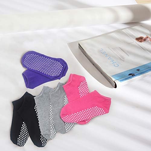 Non Slip Grip Pilate Socks Yoga Ballet Dance Hospital Home 4 pairs Sticky Socks for Women Adults