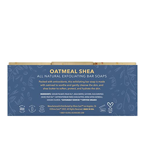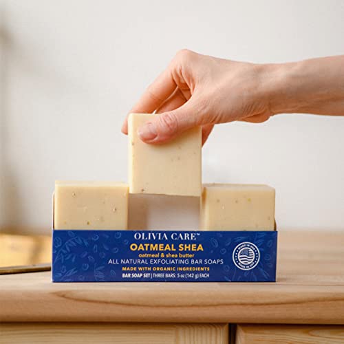 Olivia Care Natural Soap – All Natural Oatmeal Shea Soap Bar Made with Organic Ingredients 3 Pack of 5 Oz Bars (Oatmeal Shea)