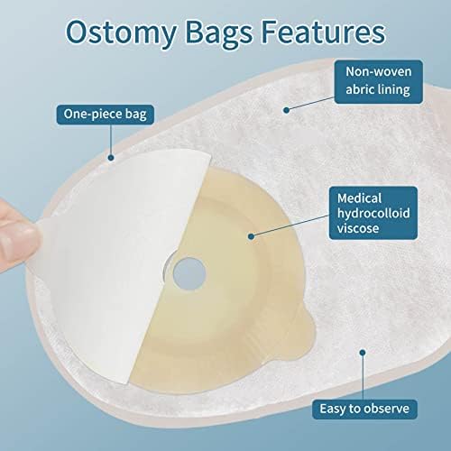 One Piece Ostomy Colostomy Bags, Ostomy Supplies, 10 Pcs Drainable Ostomy Pouch for Ileostomy Stoma Care, Cut to Fit(20-60mm)