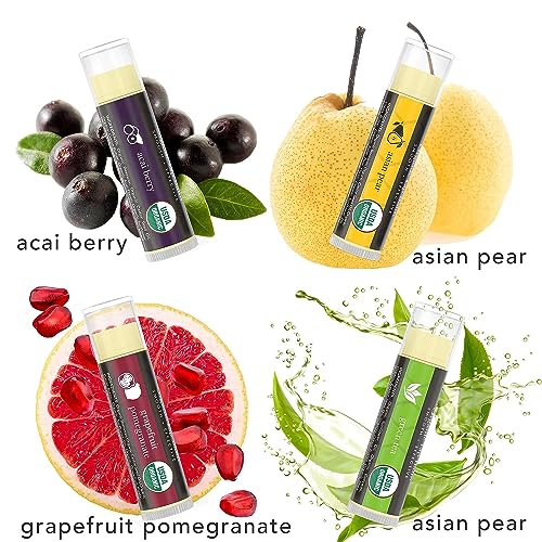 4 FLAVORS BEESWAX LIP BALM – Flavored lip balms: Asian Pear, Pomegranate, Acai Berry & Green Tea. Lip balms & moisturizers lip butter help cracked and chapped lips. Lip balm with flavors is a great small gift idea for anyone in the family.