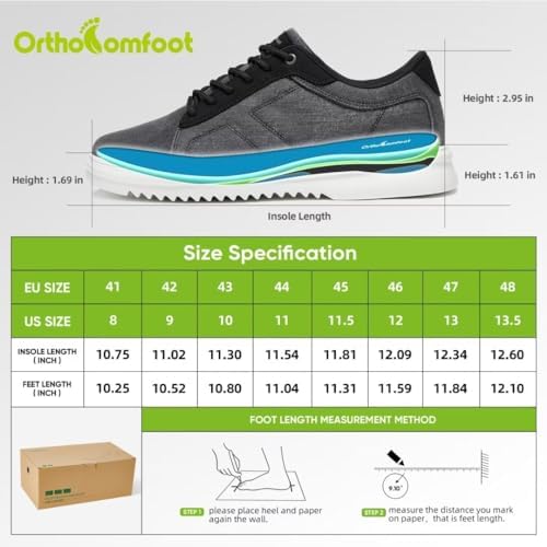 OrthoComfoot Mens Arch Support Shoes with Lace Up Design, Breathable Orthopedic Walking Shoes, Fashion Sneakers for Plantar Fasciitis with Z Shape Anti Slip Outsole