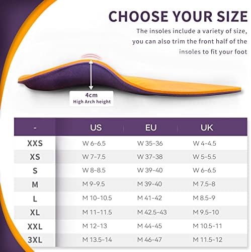 【FIT SIZE】In order to make the arch support of orthopedic insoles fit your feet better, please choose the closest size when purchasing overpronation insoles, and please make sure your shoes have enough space inside the shoes.