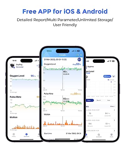 Detailed APP Report & PC Report — Free APP and PC Software provides graphic records for trends of oxygen level, heart rate and body motion. Unlimited downloading and sharing of PDF, CSV and Binary records, including O2 score, Max/Min/Avg O2 & PR. Integrate with Apple Health.