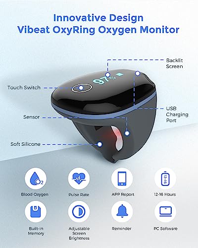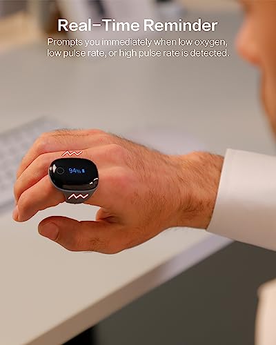 OxyRing Continuous Oxygen Monitor – Bluetooth Pulse Oximeter with Real-time Reminder & Free PC Report, Wearable Finger Oxygen Meter for 16hrs Oxygen Level & Heart Rate Recording